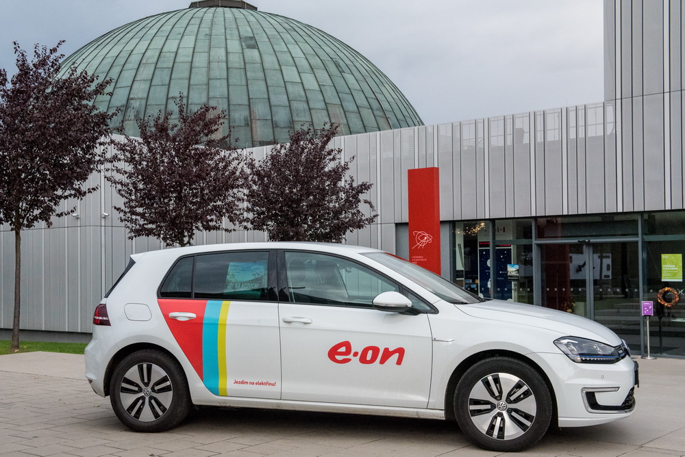 Sedněte do E-Golfu, nastartujte a hádejte, co uslyšíte.. Nic. Volgswagen E-Golf je naprosto tiché auto a podle jiných recenzí patří k nejtišším elektromobilům. Na jedno nabití dojedete přes 130 kilometrů, ale na D1 z Prahy do Brna stejně raději nevynechejte nabíjecí stanici E.ON u Humpolce. Ani řidiči ani naši hosté neměli problém s prostorem uvnitř vozu. Vpředu i vzadu je ho dost. Od normálního Golfu ho poznáte hlavně podle designových litinových disků.